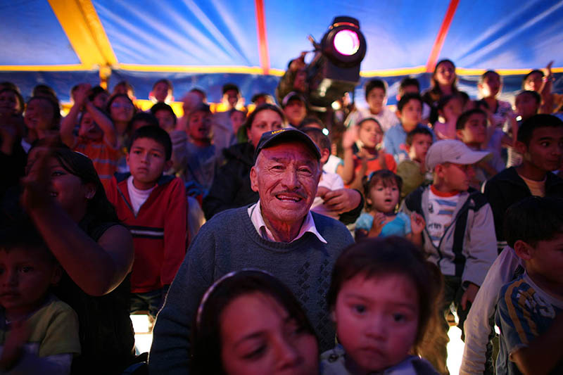 People watch Colombia's Army Circus perform in Soacha, Colombia, Friday, March 5, 2010. Soldiers perform weekly with acrobatics, dances, clowns and juggling to entertain and interact with communities with limited resources. (AP Photo/William Fernando Martinez)