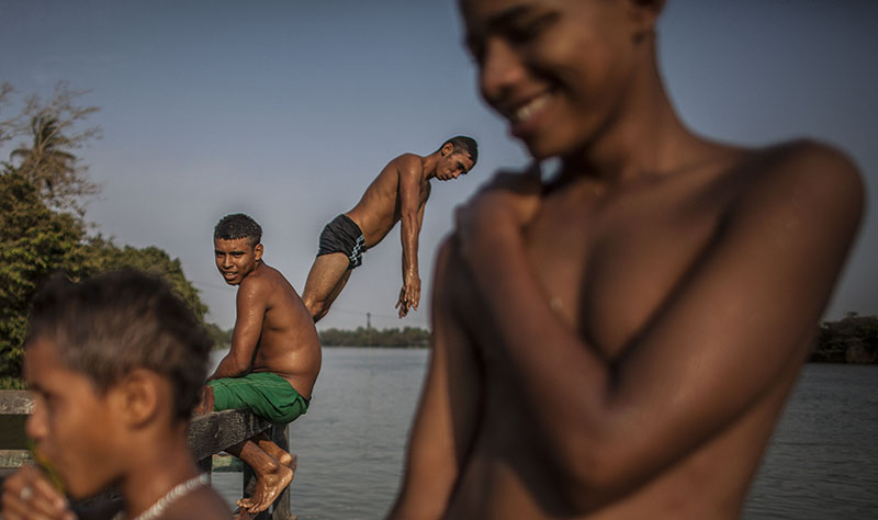 Young people swim in Santa Cruz de Lorica, Colombia, Thursday, March 27, 2014. (Photo/W.Martinez)©